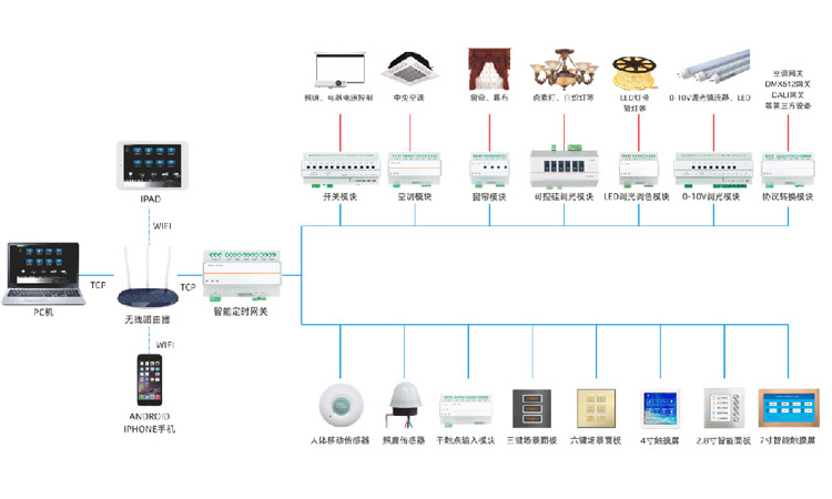 金洲科瑞智能照明系統是根據照度、場景、節假日、時間段、區域等智控手段,實現對建筑照明系統的統一智能化控制和管理。